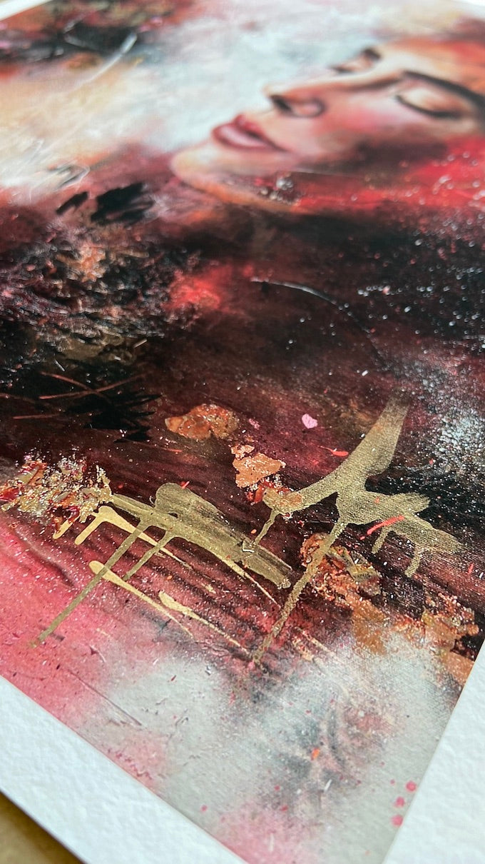 Een Giclée print is een hoogwaardige en gedetailleerde afdruk van mijn originele kunstwerken. Deze afdruktechniek is heel nauwkeurig, waardoor de kleuren, details, lagen, technieken en materialen goed naar voren komen.