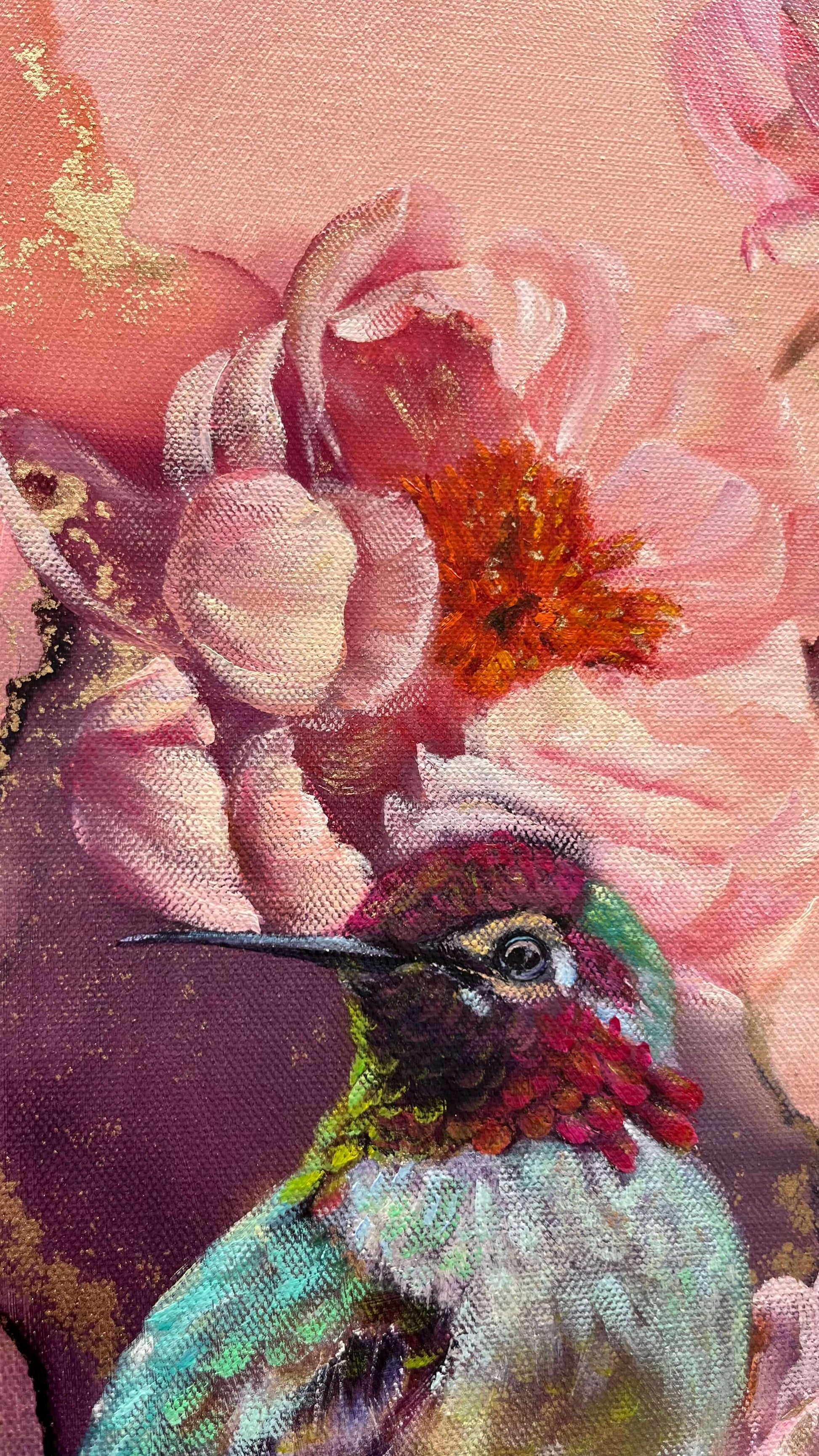 Dit schilderij is ontstaan uit een van die reismomenten die ik nooit zal vergeten, de eerste keer dat ik een kolibrie zag in Costa Rica.